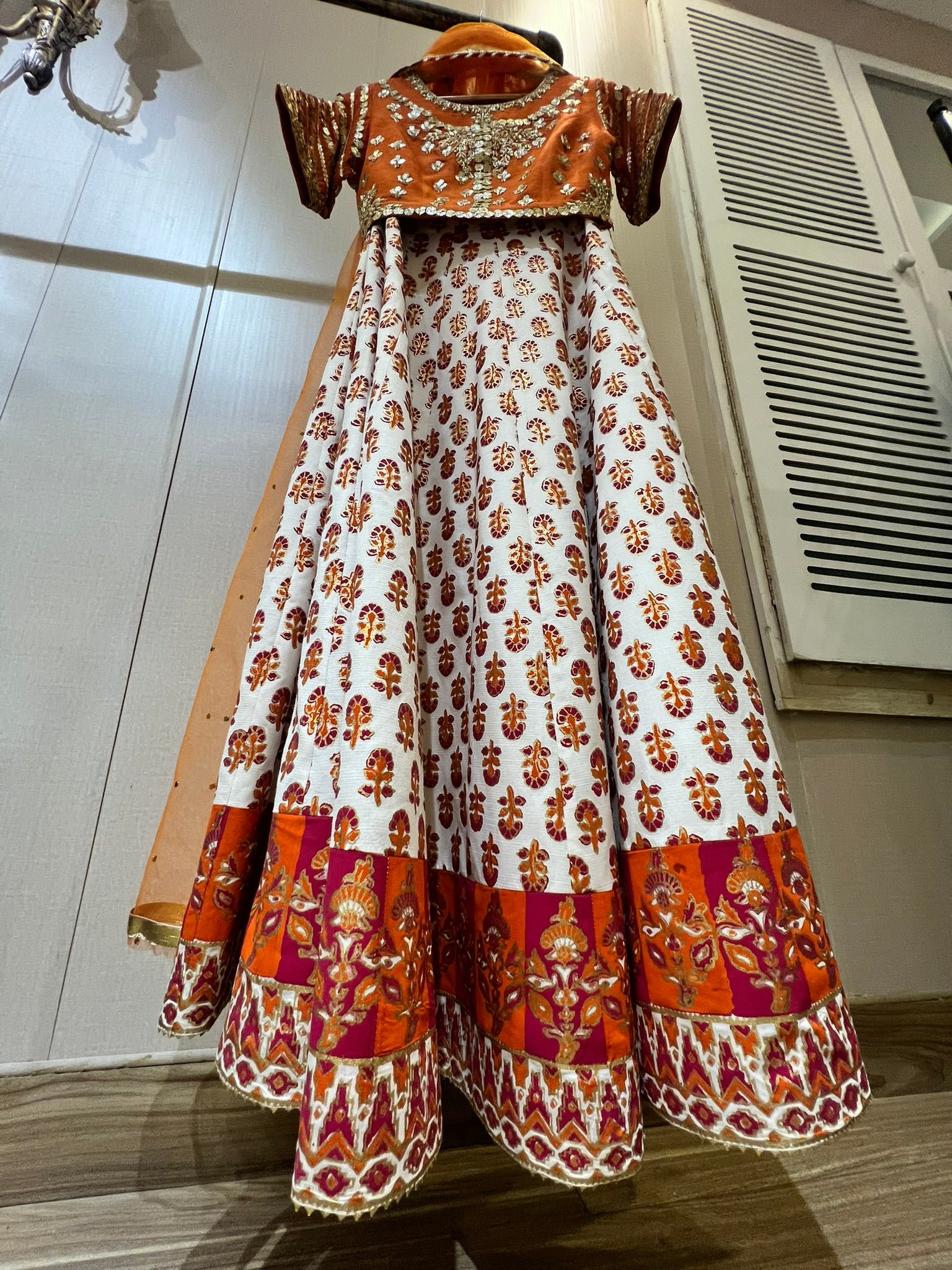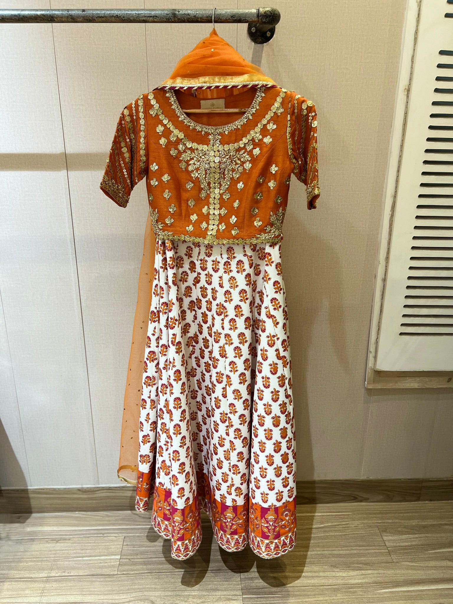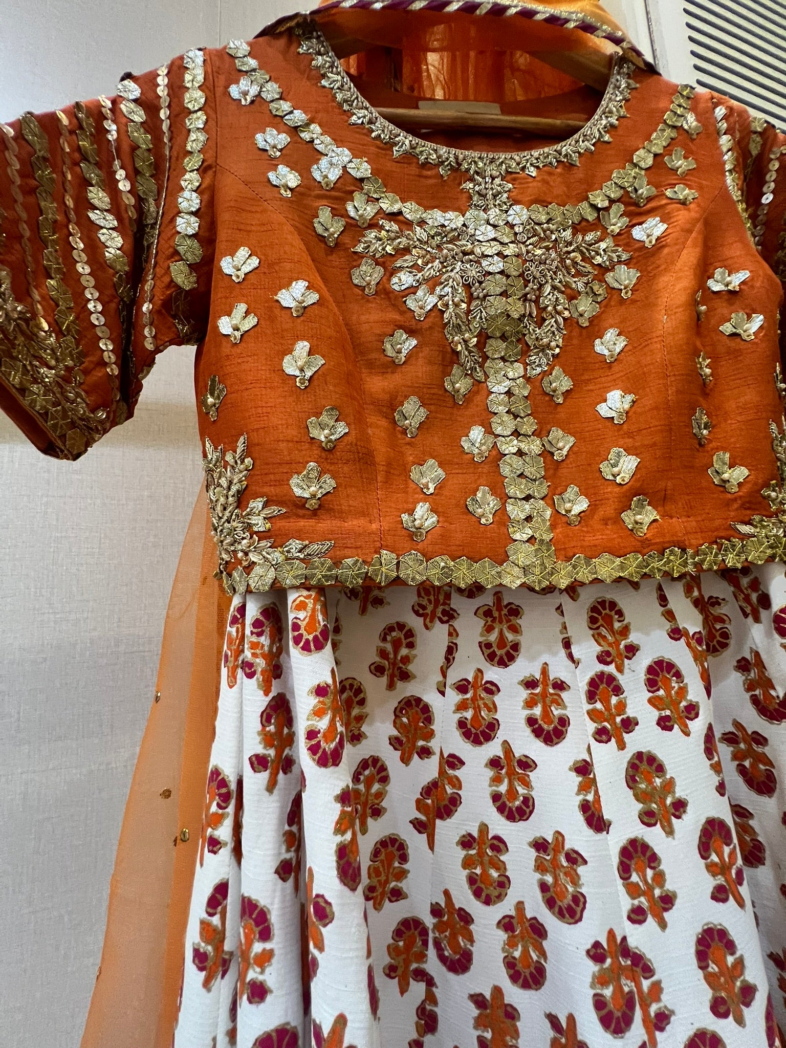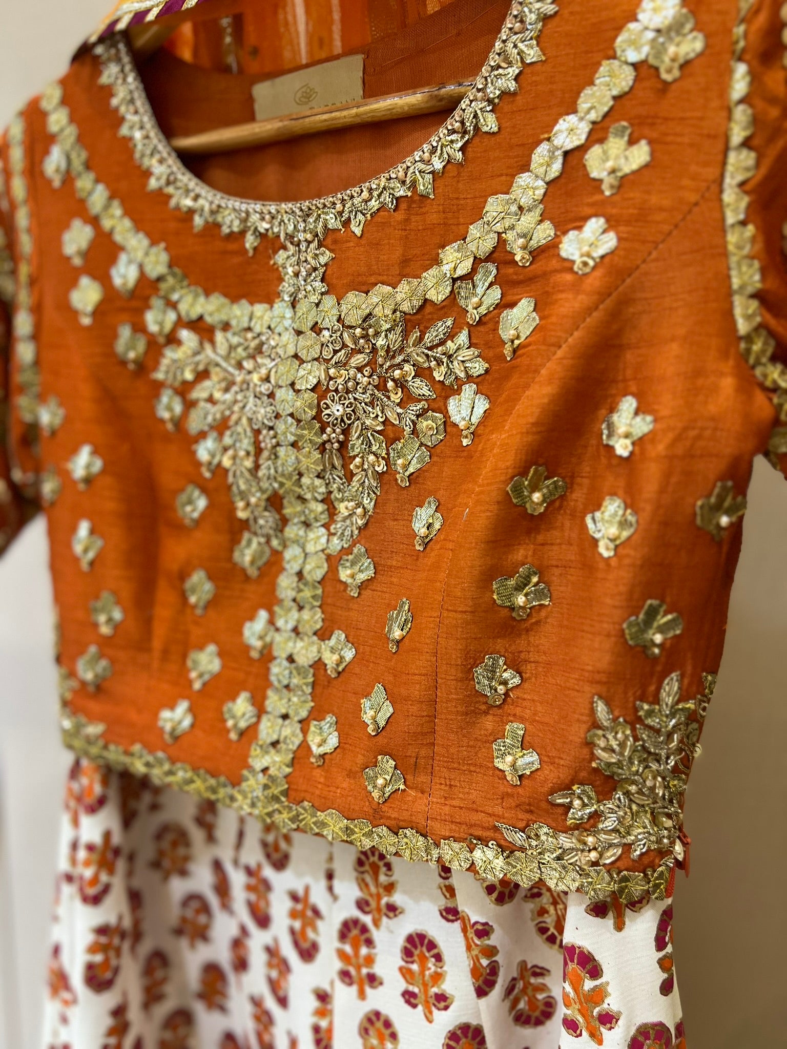 Hand Blocked printed lahnga and gota pati work on the choli