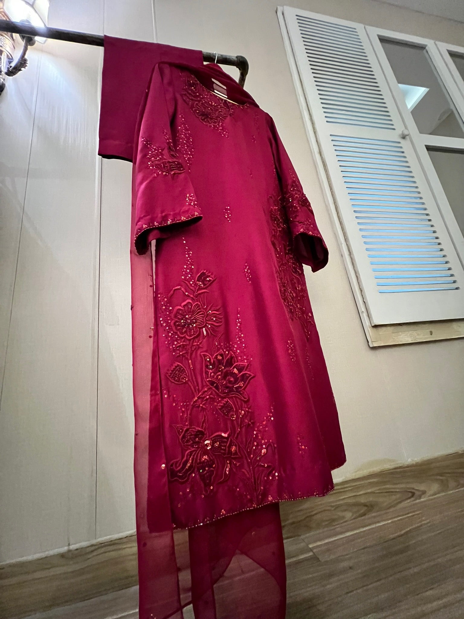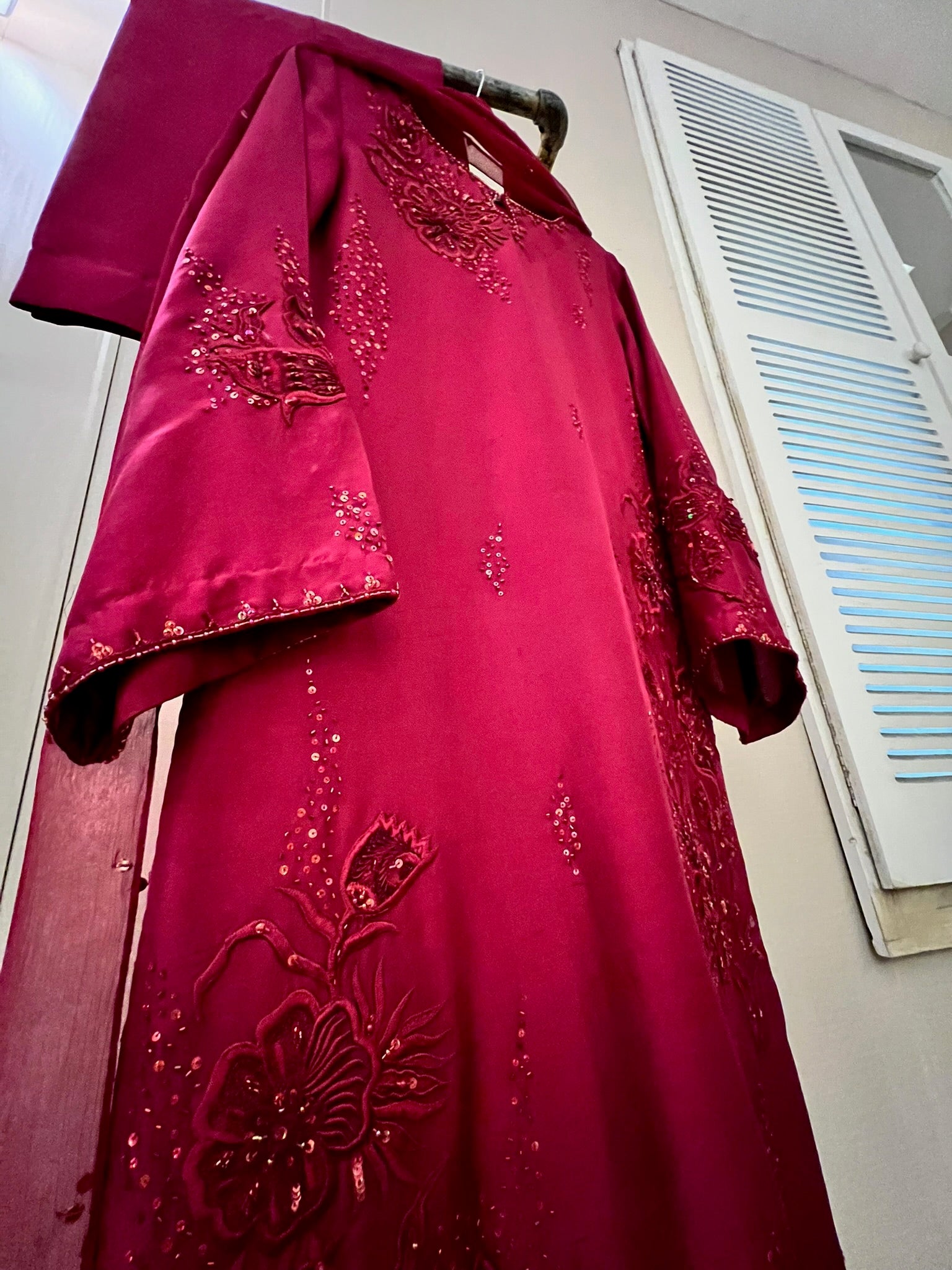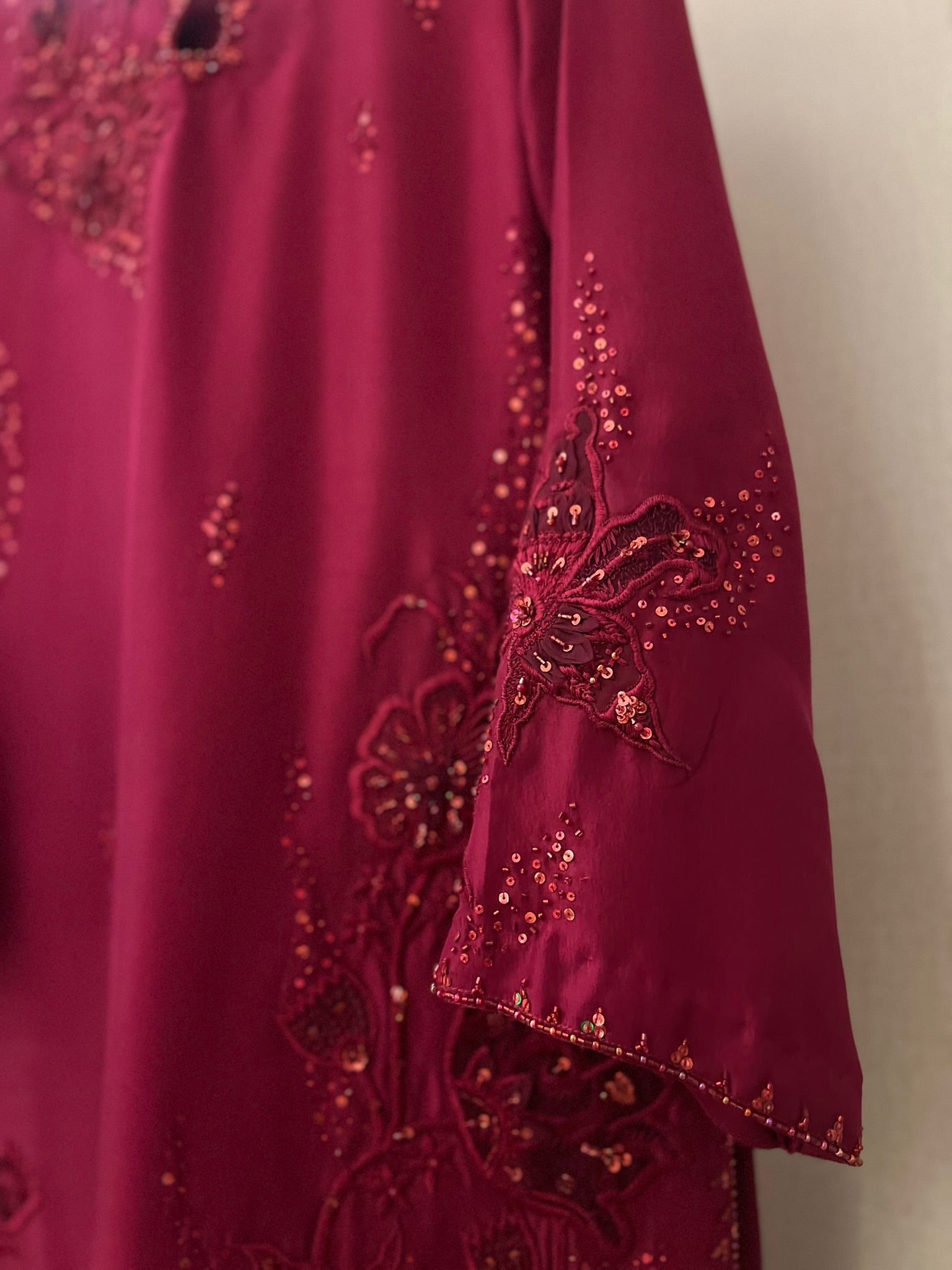 Pure Rawsilk 80grams shirt with cut work and embroidery