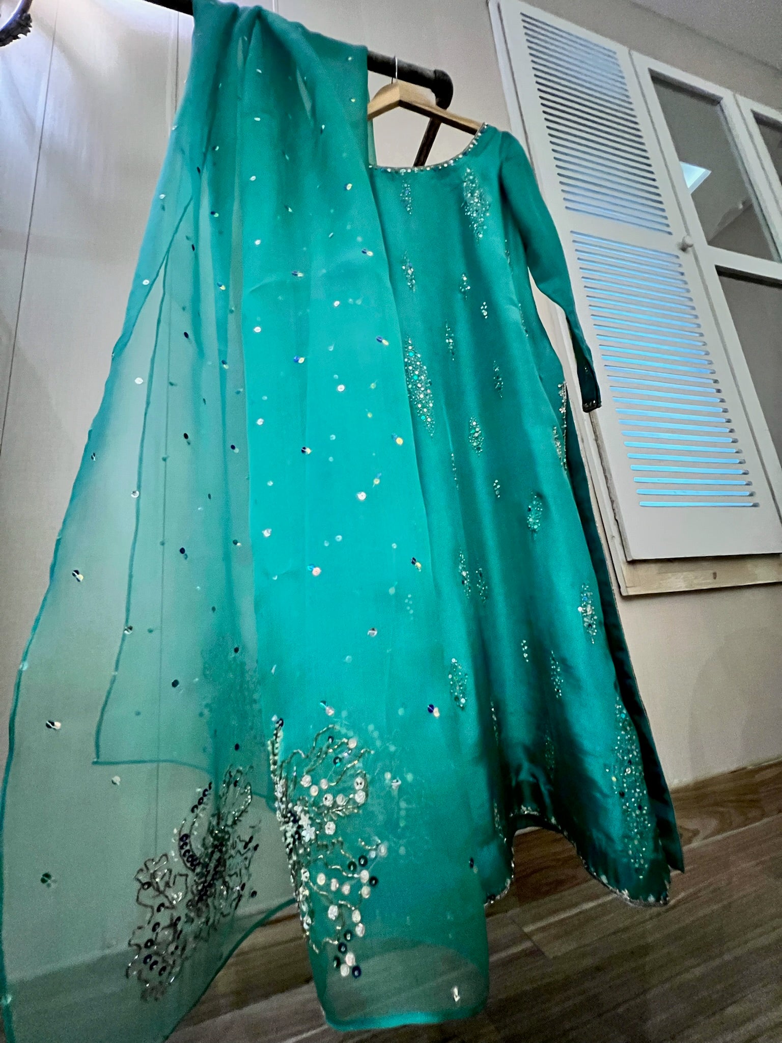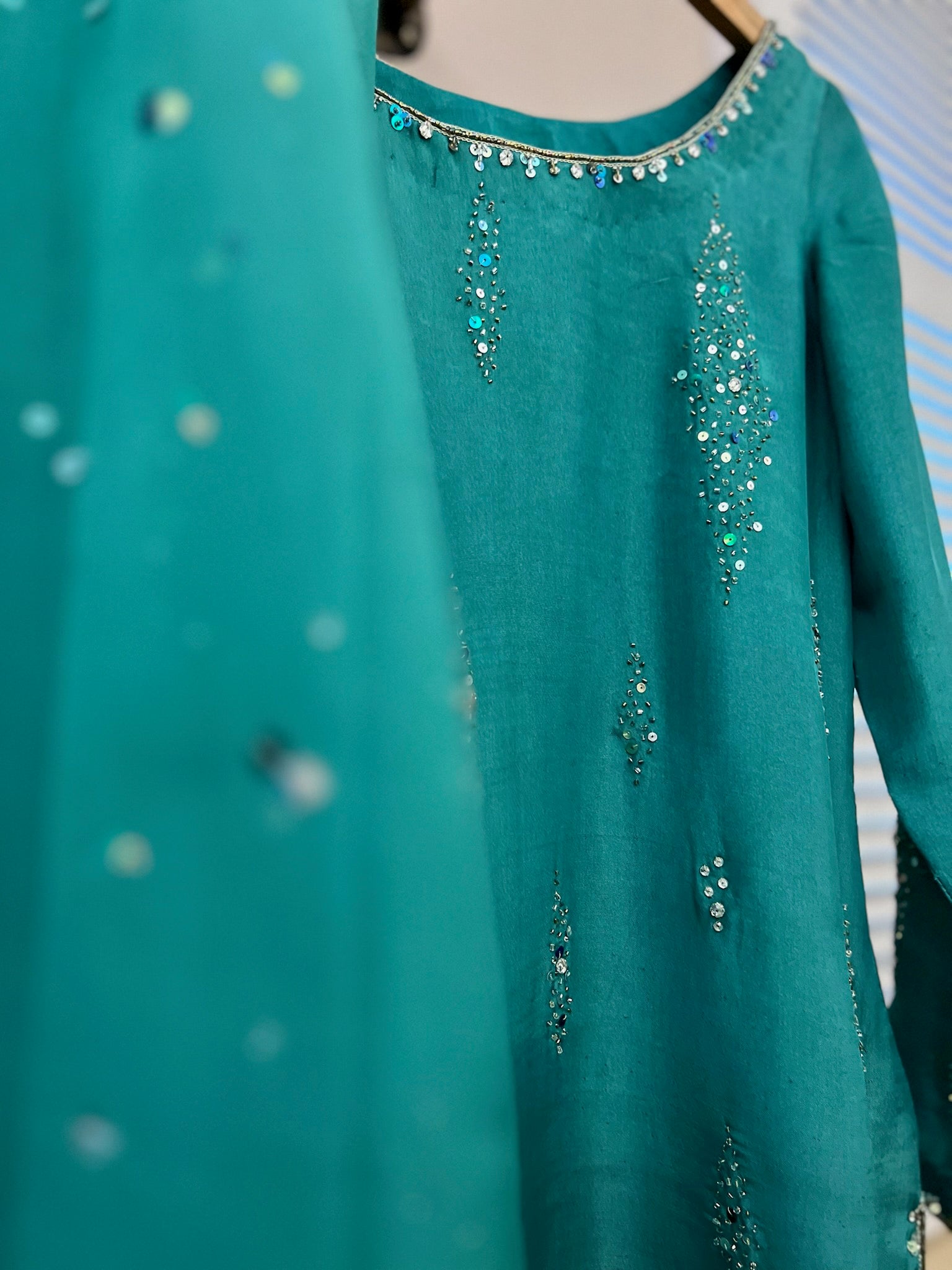 organza dupatta with hand work