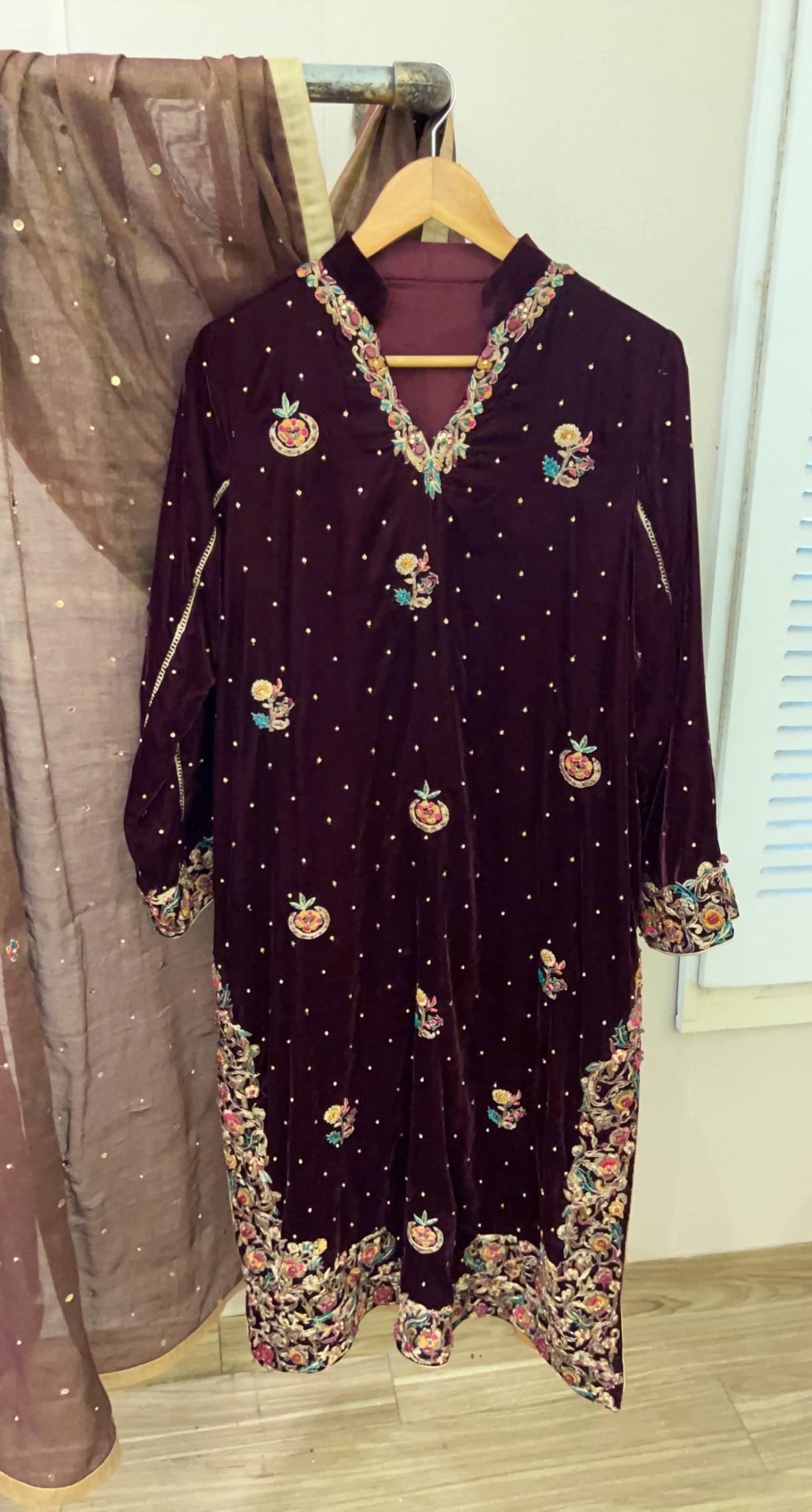 Pure velvet shirt with embroidery and hand work all over